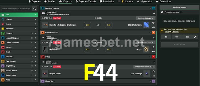 A aposta F44 oferece aos jogadores a experiência mais conveniente de apostas em eSports!
